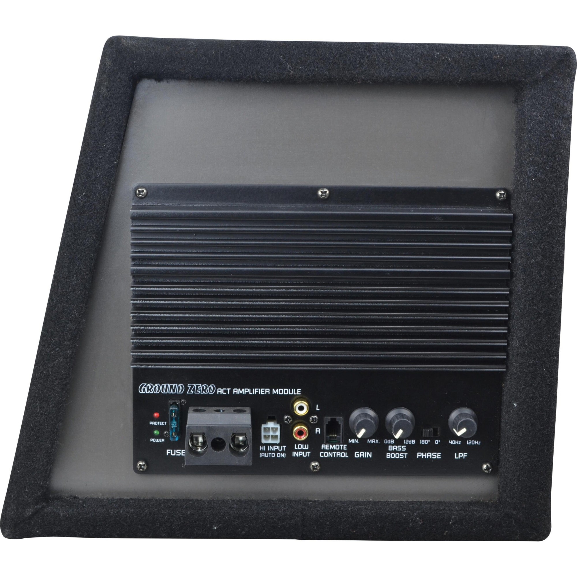 8″ high quality flat active subwoofer with aluminum cast enclosureFlat under-seat enclosure with amp..