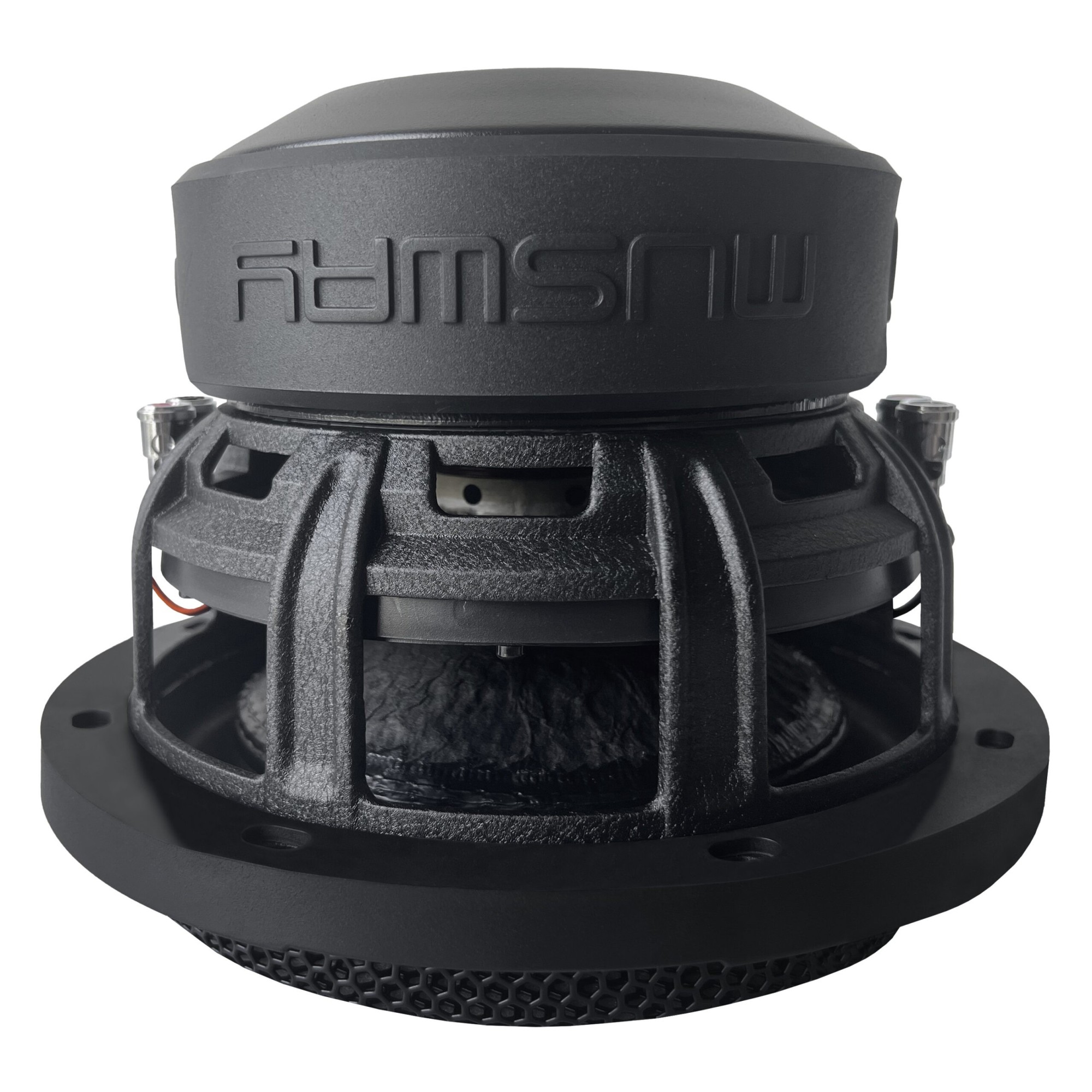 Not only is the first look convincing, the technology in detail is also impressive: all woofers are characterized by a particularly long and even membrane stroke. With the MG12 it is up to +/- 22 mm, i.e. a total stroke of an impressive 44 mm is possible! This enormous deflection is controlled by specially shaped dual spiders made of polycotton, the properties of which have been continuously optimized by the MUSWAY sound engineers in laboratory and sound tests. The moving mass (Mms) could also be kept low by using copper-clad aluminum voice coils (CCAW). All of the measures result in very favorable Thiele/Small parameters, so that the subwoofers are also very suitable for closed housings. What stands out here is the MG10, which, with a speaker volume of 25 liters, plays deep and cleanly into the bass cellar up to 43 Hz (-3 dB). Anyone who attaches great importance to high impulse fidelity and cleanliness should choose this version.