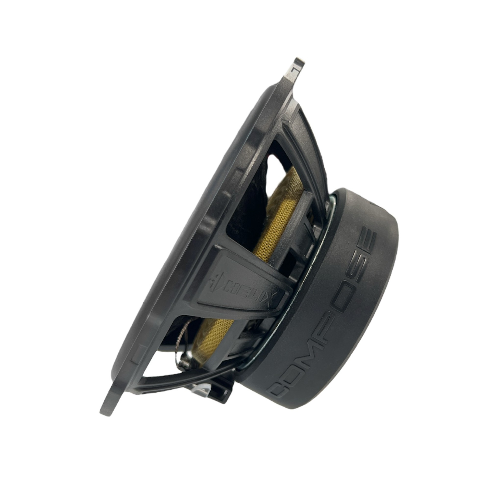 All HELIX COMPOSE i7 and i3 speaker baskets are made of a high-tech polymer composite, which has been additionally reinforced with glass spheres. The result: maximum stability with minimal self-resonance, while also eliminating flux modulation of the magnetic system and maximum resistance to thermal influences. Last but not least, this allows for much more compact basket dimensions and thus simplified installations in cramped installation conditions.