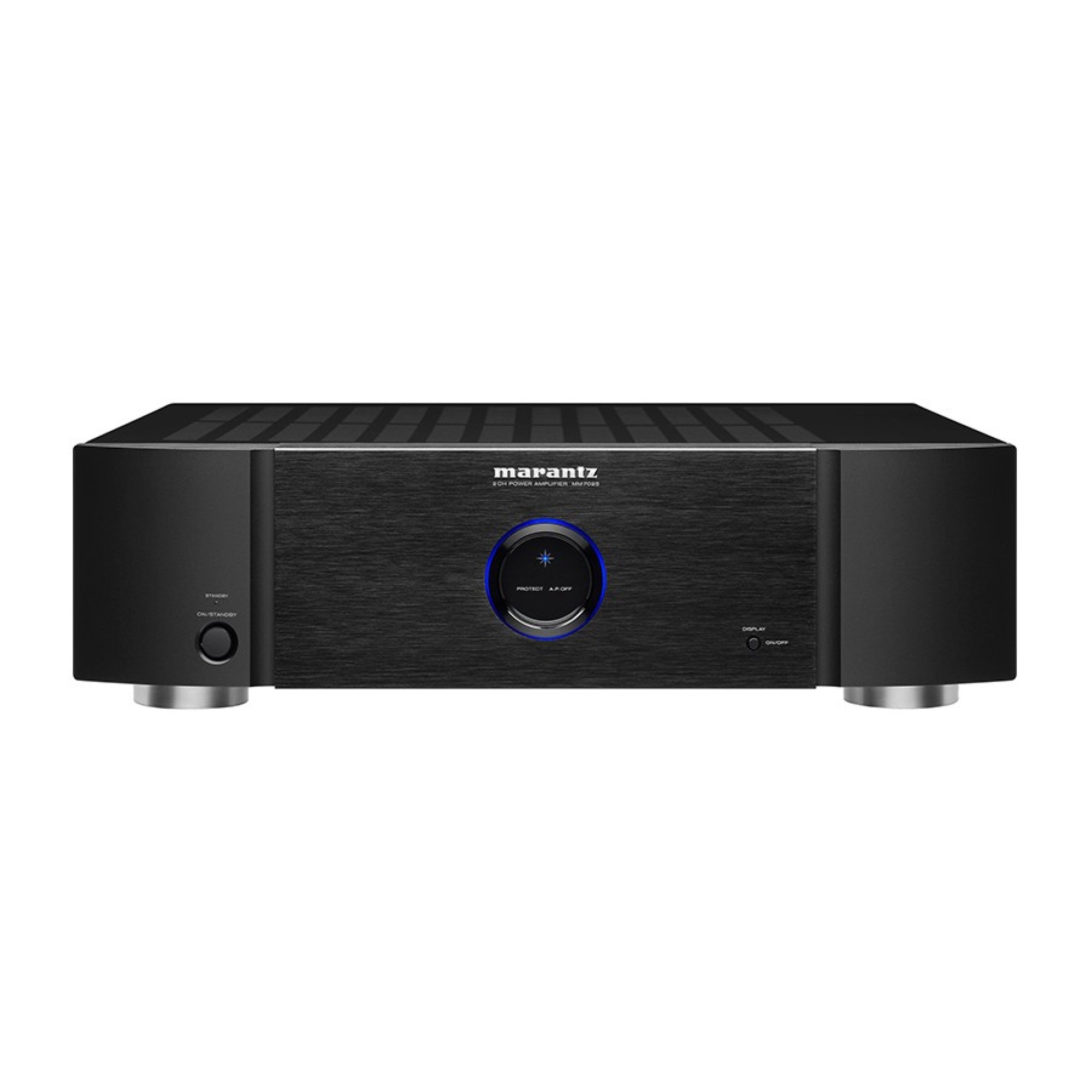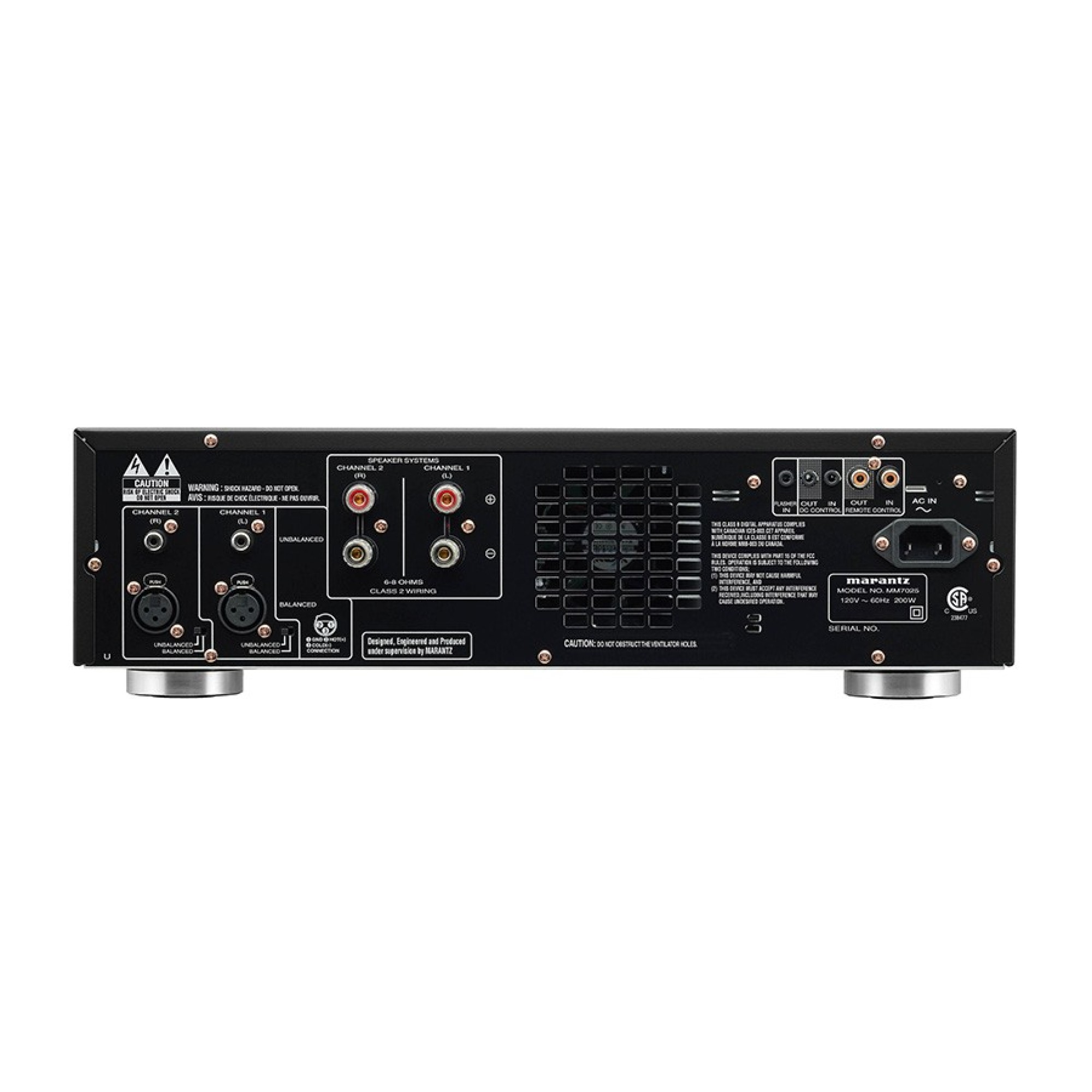 The MM7025’s advanced technology serves all your listening needs. Current feedback circuits, originally developed for the Marantz’s Reference Series amps, insure the purest sonic reproduction regardless of source. In the final amplification stage, specially selected LAPT Hyper-Power output transistors, also borrowed from the Reference Series, deliver fortissimo and pianissimo passages with equal aplomb.