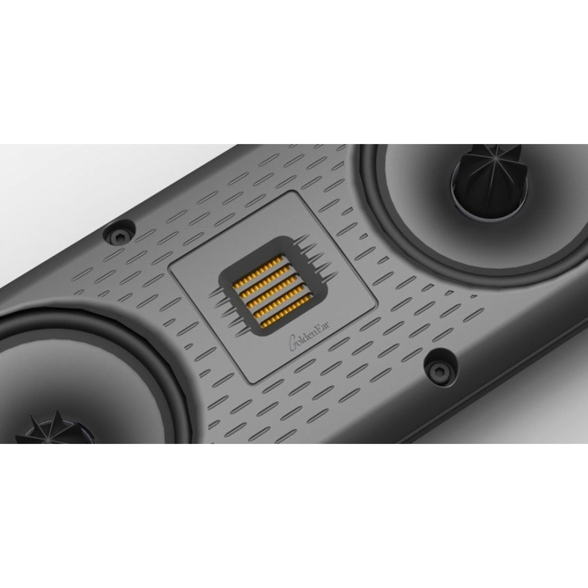 The 3D Array soundbars incorporate six (3D Array X) or eight (3D Array XL) of GoldenEar Technology’s spider-leg cast basket 4.5″ bass-midrange drivers with our unique Multi-Vaned Phase Plugs (MVPP™). In addition, there are three of GoldenEar’s extraordinary High-Velocity Folded Ribbon tweeters (HVFR™). Both utilize our new, patent pending, Mag-X Coupling™ Crossover Technology, which delivers improved 3D imaging as well as smoother response and greater detail. The 3D Array X is an ideal match for 48″- 60″ TVs, the 3D Array XL is an ideal match for 65″ and up TVs. The beautiful piano-gloss-black-finished cabinets are aerospace-grade extruded aluminum with marble-powder-infused baffle and end-caps. They can be easily wall-mounted using their keyhole mounts or threaded brass inserts, or shelf-mounted using their adjustable rear supports.