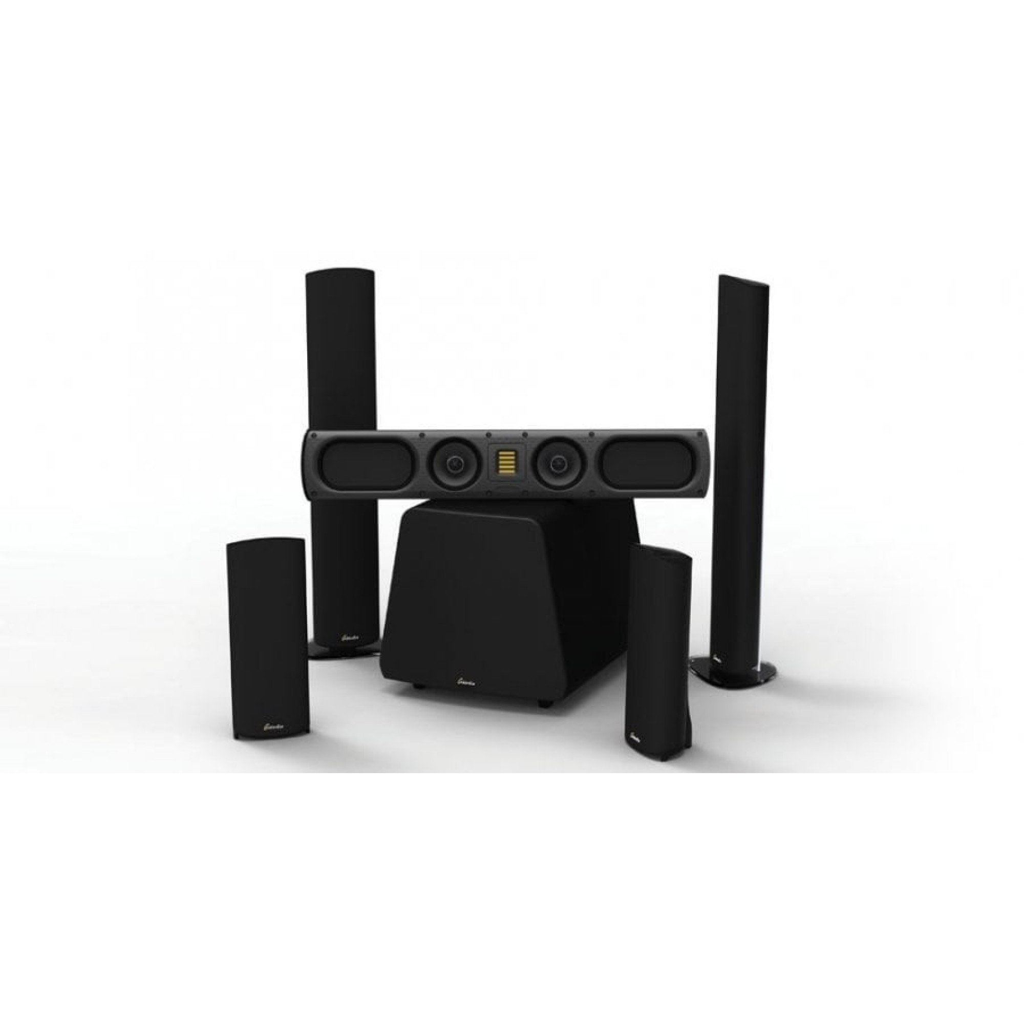 Its cabinet is constructed from piano-gloss-black-finished aerospace-grade aluminum and contains two GoldenEar 4.5” cast basket bass/midrange drivers with Multi-Vaned Phase Plug (MVPP) configured in a D’Appolito array, surrounding the High-Velocity Folded Ribbon tweeter. Two 4”x 7” quadratic planar low-frequency radiators complete the driver complement. Wall mounting is easily accomplished using the threaded inserts or keyhole mounts on the rear, or table top using the optional smoked-glass Table/Shelf Stand 50, or even floor standing using the optional SuperStand 50 Floor Stand – note total height of speaker and floor stand is 48″. The horizontal SuperSat 50C center-channel version includes adjustable leveling feet allowing for multiple angles when shelf/table top mounting.