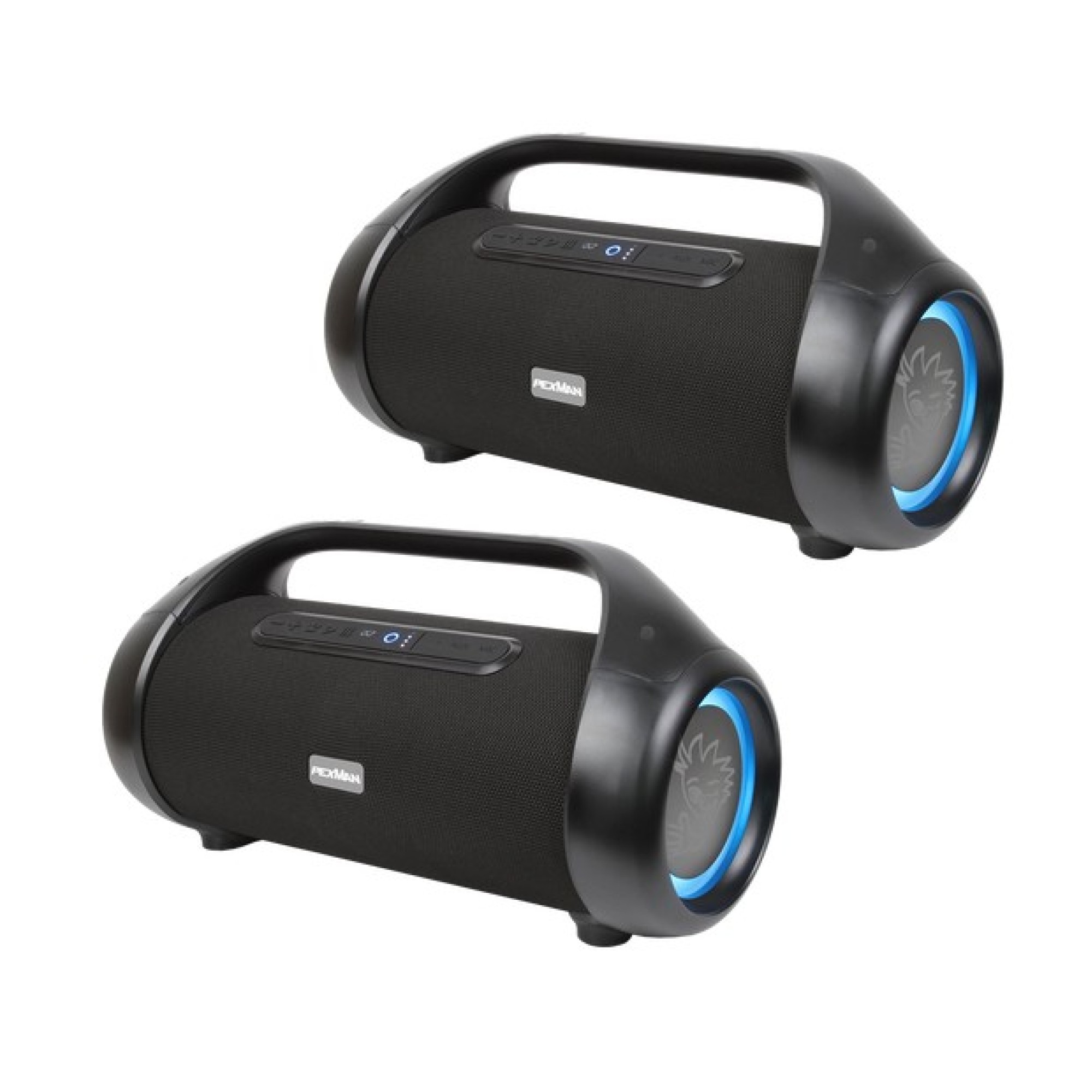 Pexman PM-50 stereopair!! You can pair two PM-50 speakers together. PEXMAN is a Finnish brand, backed by AI Group, Finland′s largest and best-known car audio importer. The PM-50 was born out of our passion for creating an even more awesome speaker to enjoy anywhere! • 2.1CH portable Bluetooth fabric speaker • Water resistant IPX5, splash-proof, rainbroof, perfect for beach, poolside, boat and more outdoor activies • Dedicater button for TWS function, archieve true wireless Bluetooth playing double enhanced stereo sound • Karaoke function with single input for one wired microphone • OptimizedGoogle assistant and Siri voice control Hands-free mic for easy picking up the call • EQ function offering dynamic sound effect • RGB Lightning • With A2DP Bluetooth, wireless stream music from any Bluetooth enabled device • Power bank function, support 5V, 1A output • Line-in function, suitable for PC, TV and other audio devices • Built in lithium rechargeable battery 7,4V 6600mAh • Strong carry handle, easy to take out Specifications: Bluetooth version: 5.0 Horn size: 3″ x 2 Subwoofer size: 5″ RMS Power Output: 40W Peak Power Output: 88,5W Battery Capacity: 7,4V, 6600mAh Play time: up to 18 hours Frequency Response: 50Hz-15kHz Bluetooth connecting range: 10m Product size: 452( L ) x 182(W) x 234 (H) mm Package Contents: 2x Portable Bluetooth speaker 2x Charging cable 2x Audio cable 2x User manual