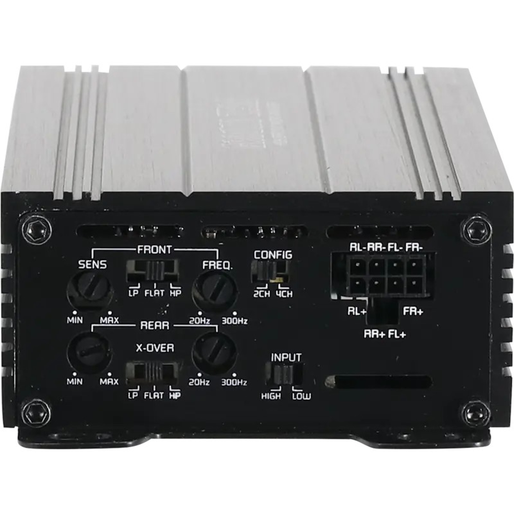 4-channel amplifier with small dimensions, integrated active crossover and auto-on function