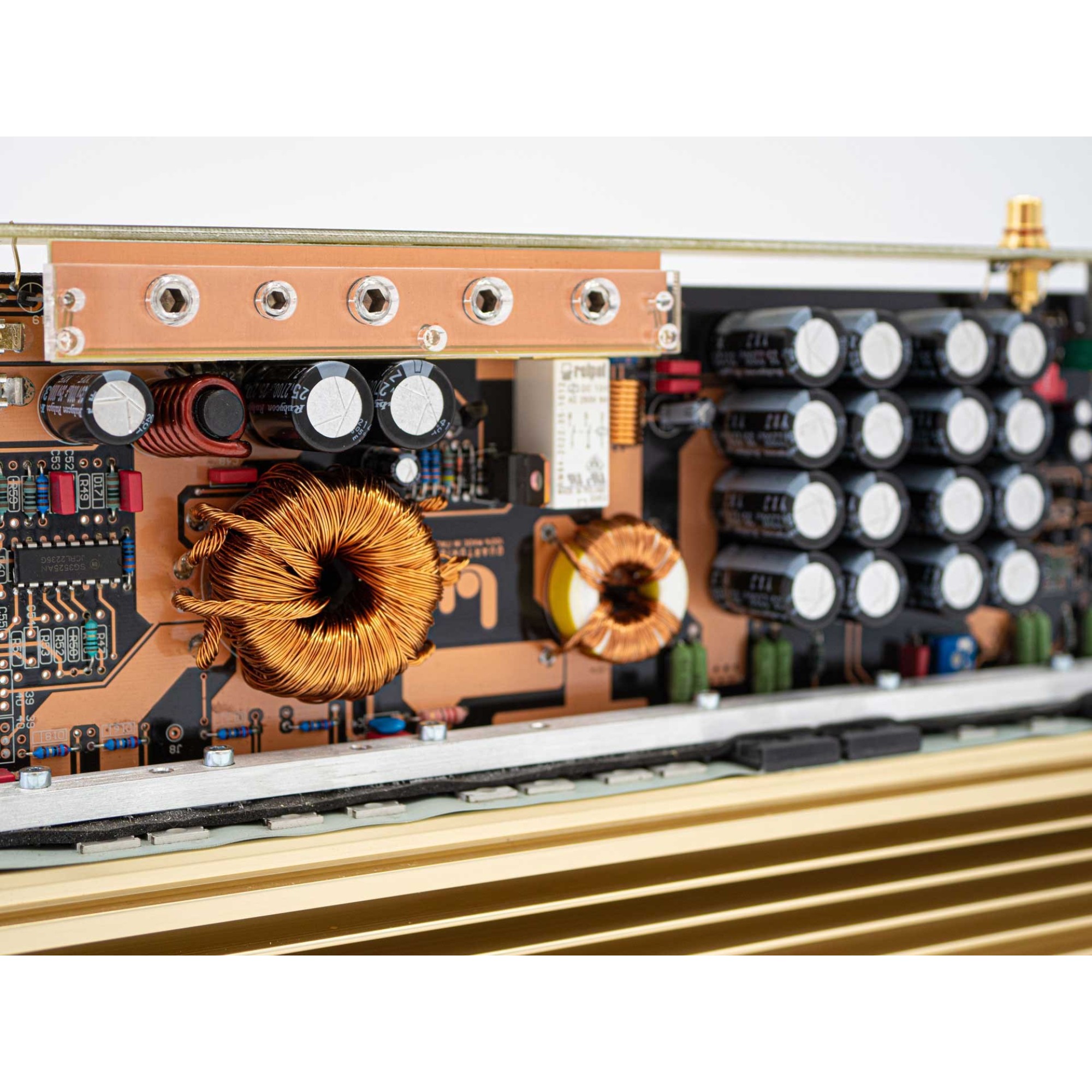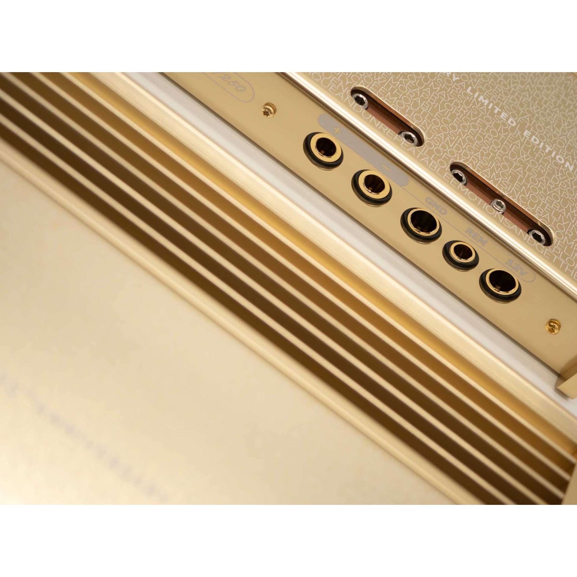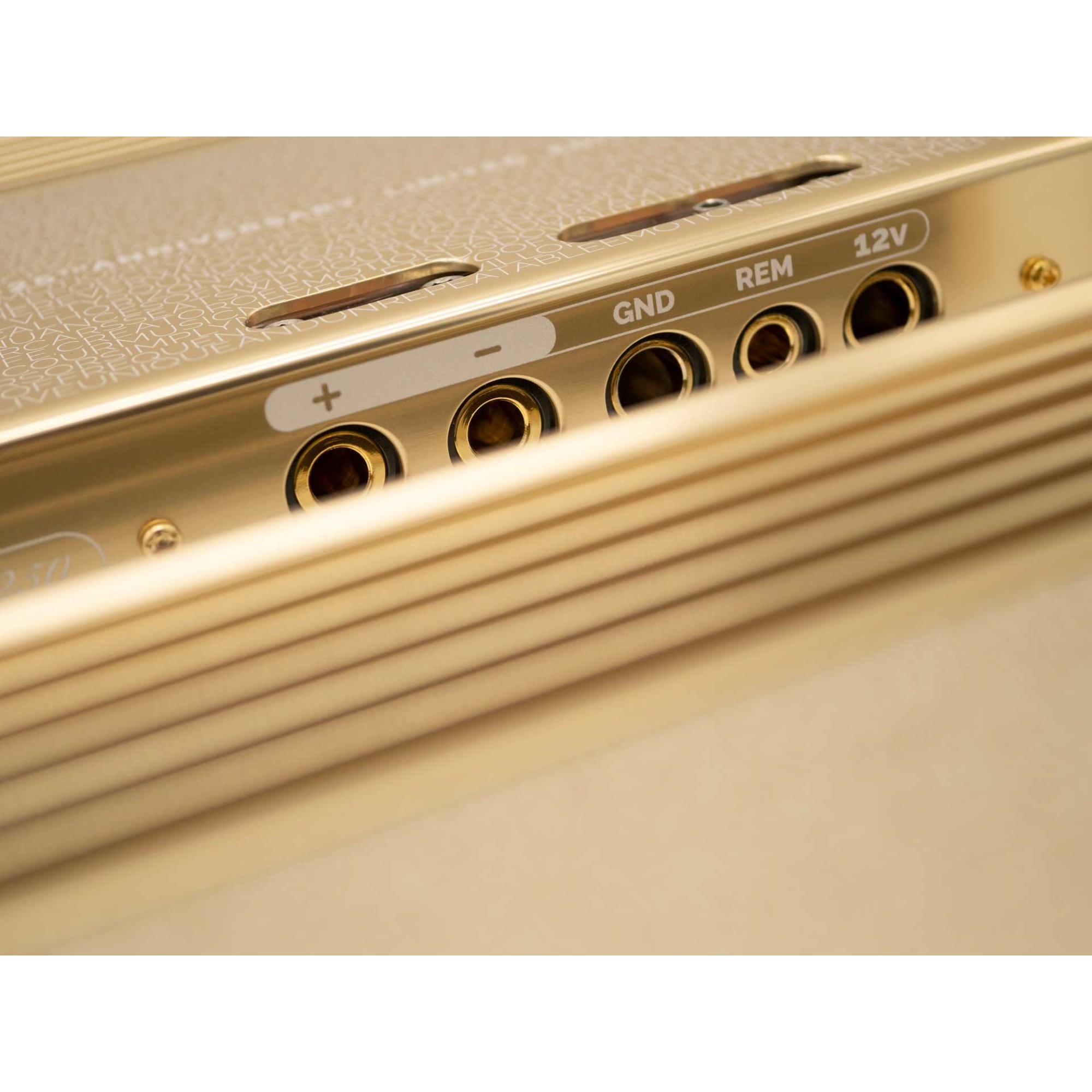 After the success of 20th Anniversary limited amplifiers Ingot 1 and Ingot 2 five years ago, for 25th Anniversary Limited Edition we developed a unique pair of mono amplifier in Class A, combining the best from all worlds, gold plated brass blocks connectors same as Desiderio, shiny and classy polished gold aluminium anodized and laser engraved chassis of Ingots 1 and 2 (20th anniversary limited edition amplifiers), Heritages’ and Precisions’ improved final stage and circuitry to make an even higher Class A polarization, for an outstanding clarity, accuracy and musicality.