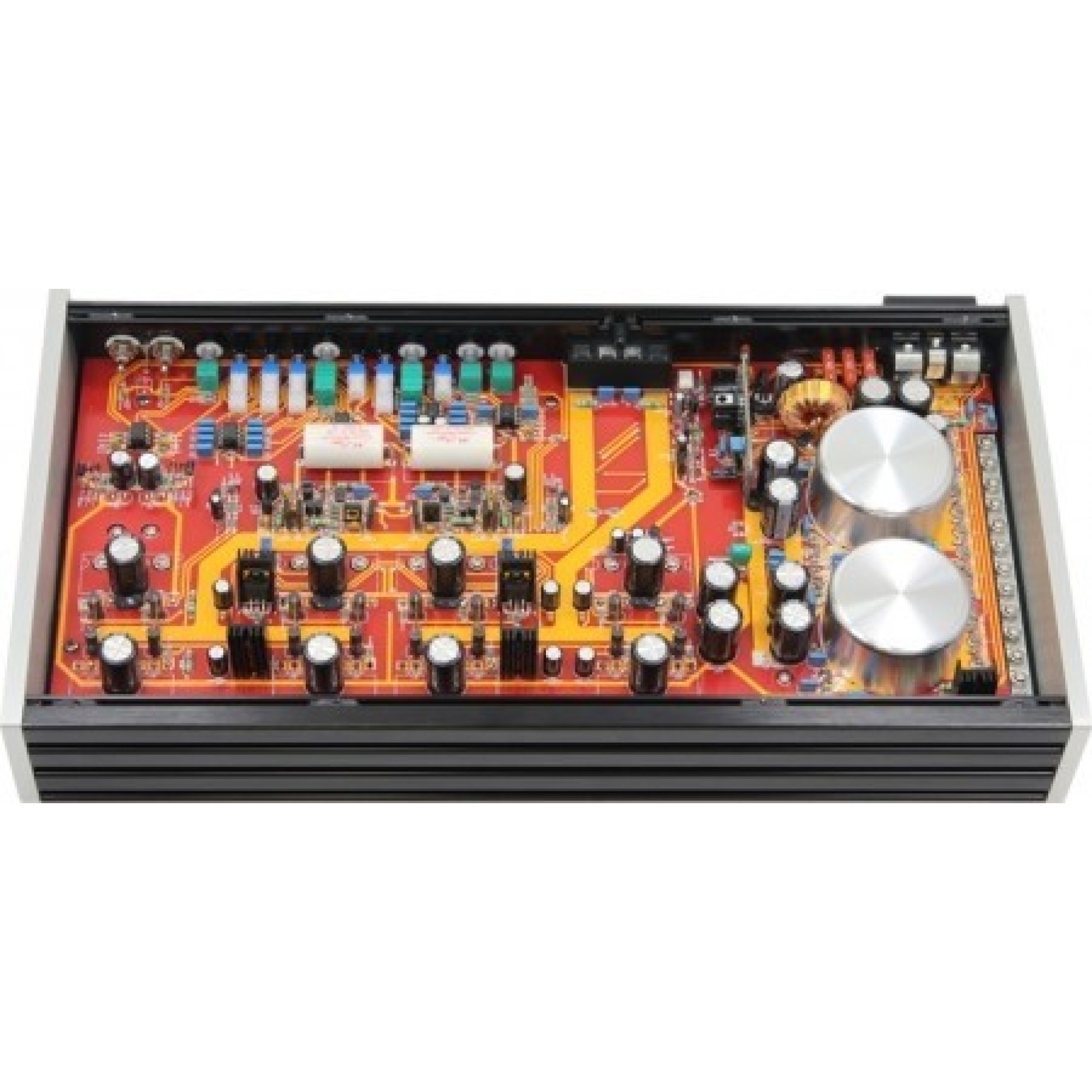 Plutonium-series HighEnd amplifier designed for pure SQ. Thnaks to adjusting BIAS, you can decide how long amplifier works in pure A-class. With smaller BIAS it is more suitable for tweeter and midrange use. Having more three dimensional sound stage, more precise nuances and warmer sound. With bigger BIAS it works better for bass use. Sound has more authority and power. Dual power supply, Mundorf capacitors and Burr&Brown operation amplifier are best parts you will find in a car audio amplifier.