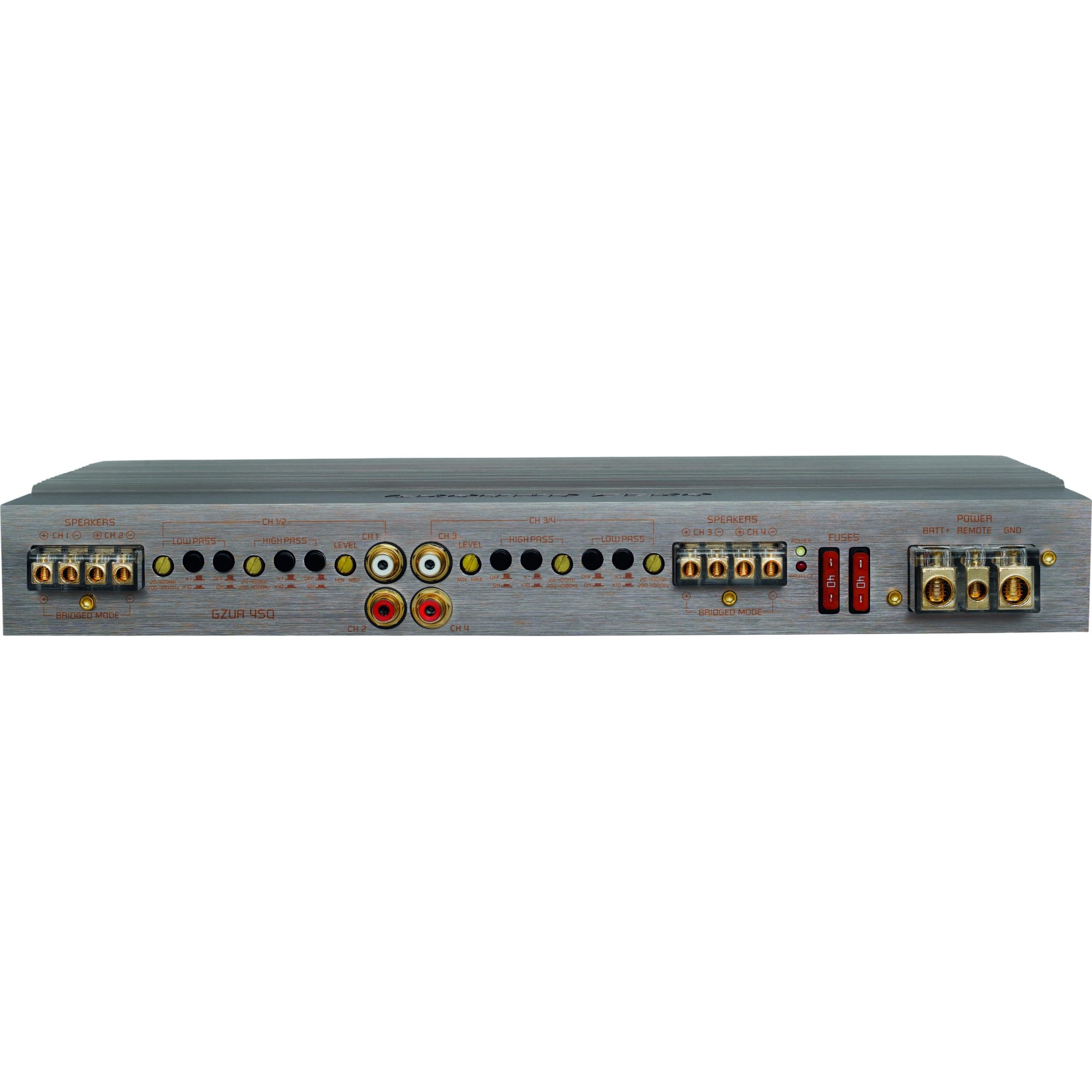 Ground Zero Uranium 4-channel high-end class A/B SQ amplifier. 2 ohms stable (stereo operation) Adjustable BIAS setting Adjustable high and low pass filters with wide bandwidth Bandpass function with activated high and low pass filter Adjustable input sensitivity Power on delay Temperature / short circuit / overload protection