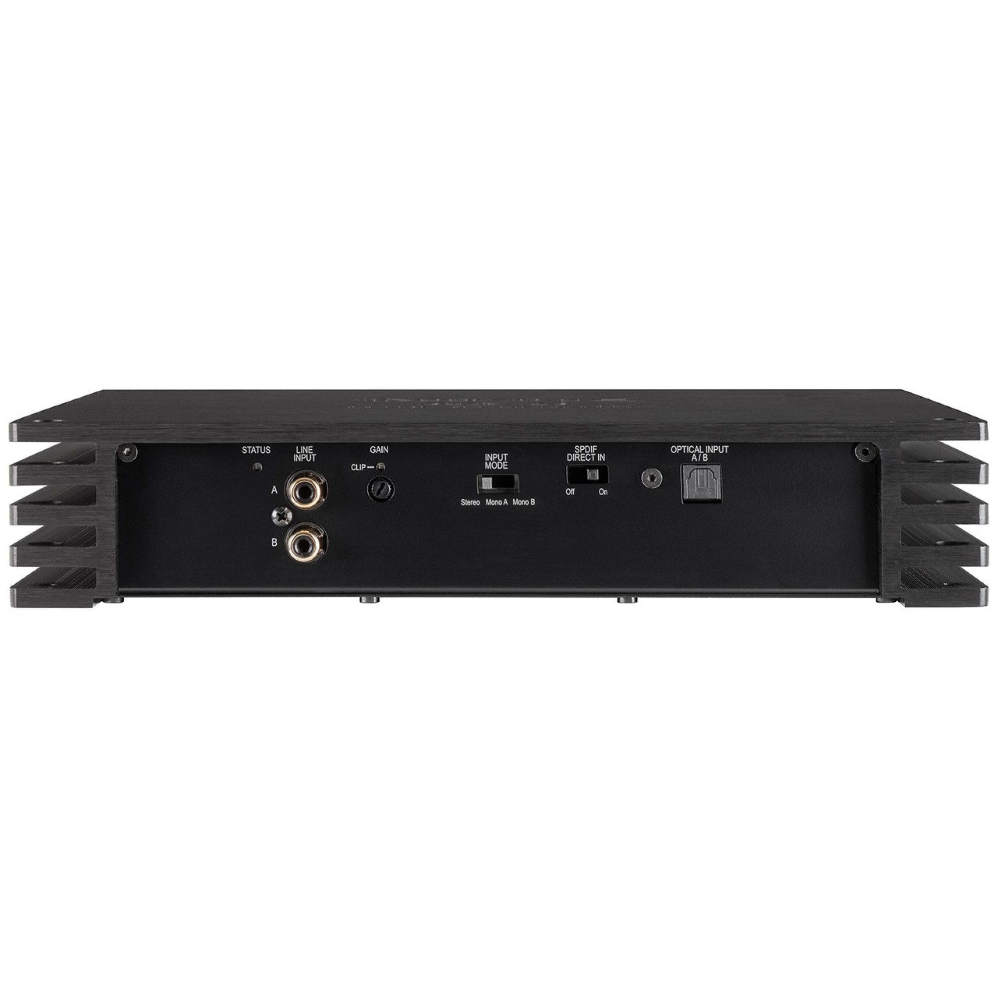 Digital, optical signal input in SPDIF format including SPDIF Direct In switch for routing the digital input signal directly and losslessly to the power stage