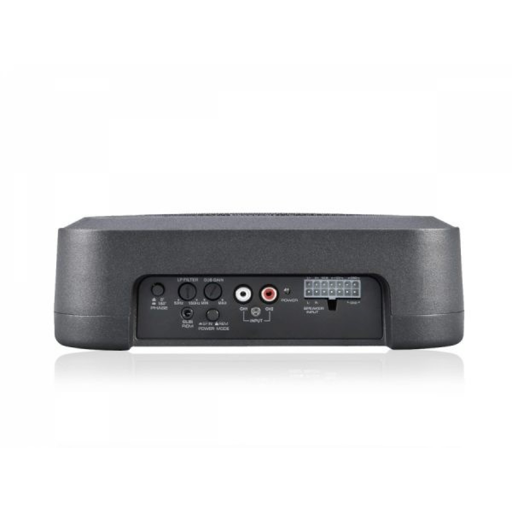 The side panel offers easy access to RCA and auto-sensing speaker inputs. The side panel also gives access to Phase, Gain, LP Crossover and Remote Sub Level controls for greater flexibility during installation.