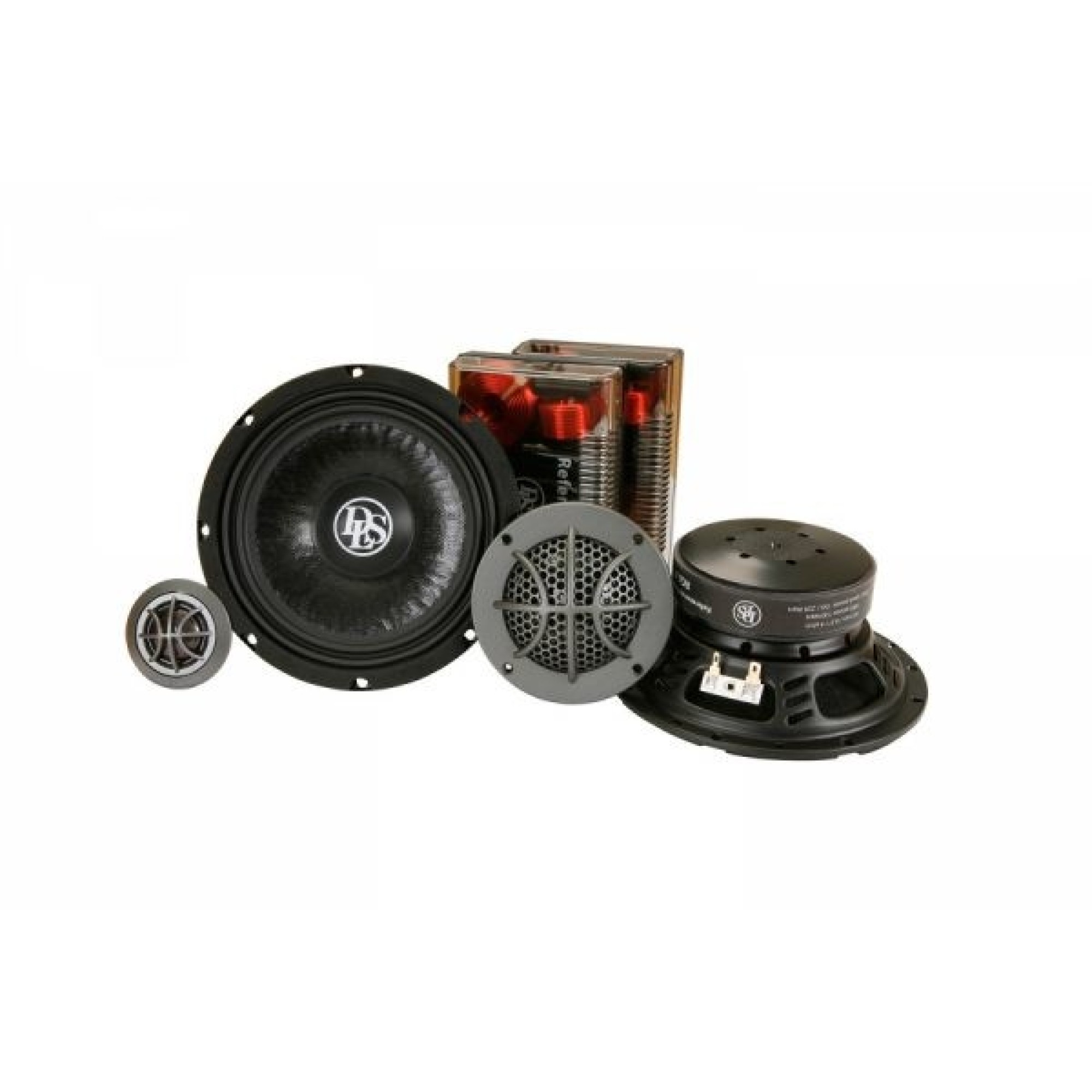 Reference 6.3 yra 3-jų juostų komponentinė garsiakalbių sistema su: