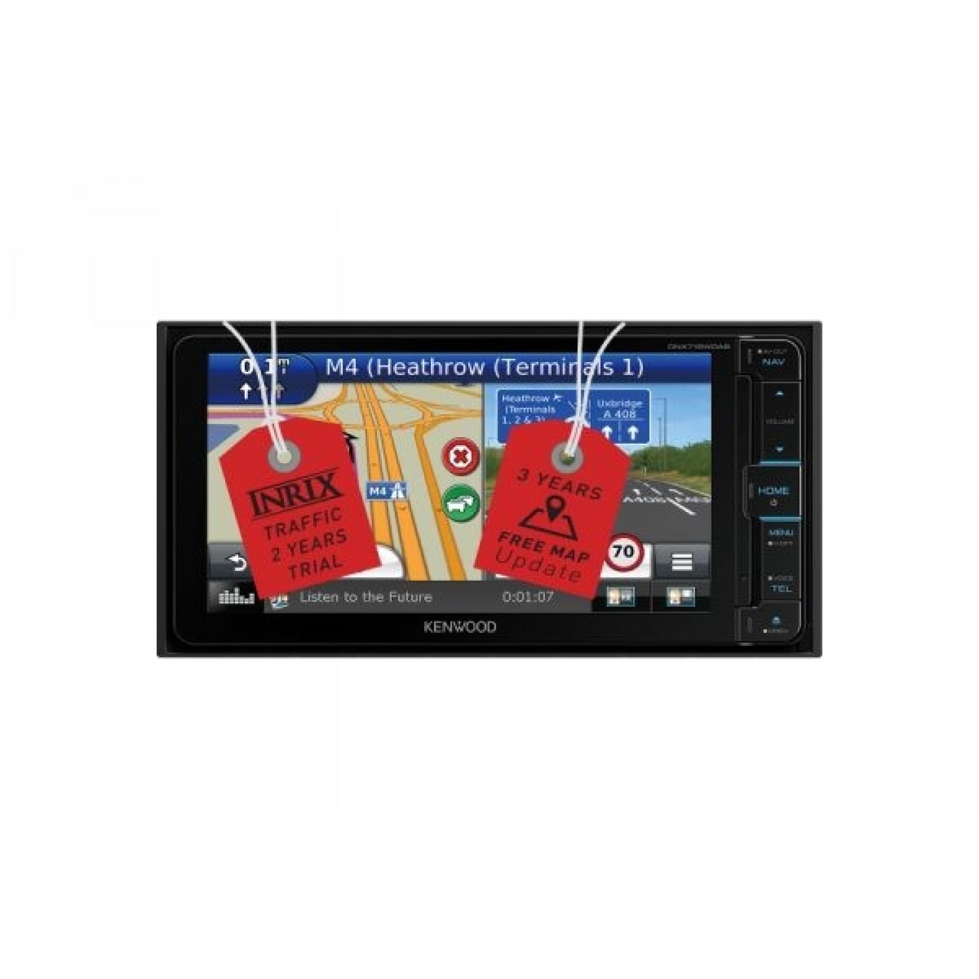 Wi-Fi enabled high-end built-in navigation AV system with a large 7-inch 24 bit True Colour Clear Ty..