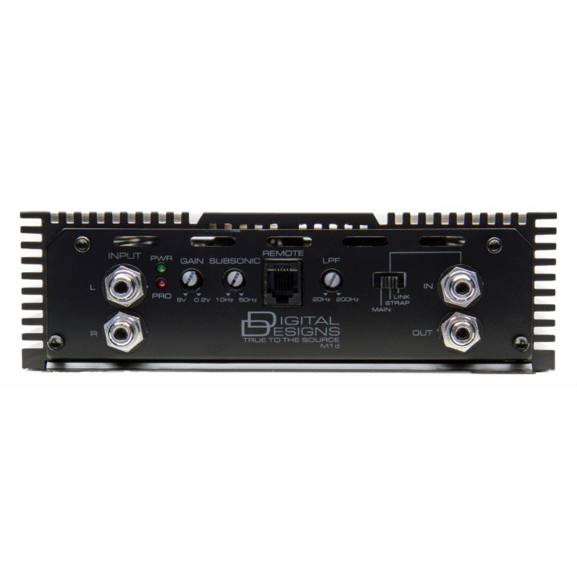For installation ease, and upgradeability the M1d features Strap and Link mode. When using one of these modes you’re able to use multiple M1d in an install and control the Strapped or Linked amplifiers level settings from the main. You’ll also be able to use a single remote gain to control all strapped and linked amps.