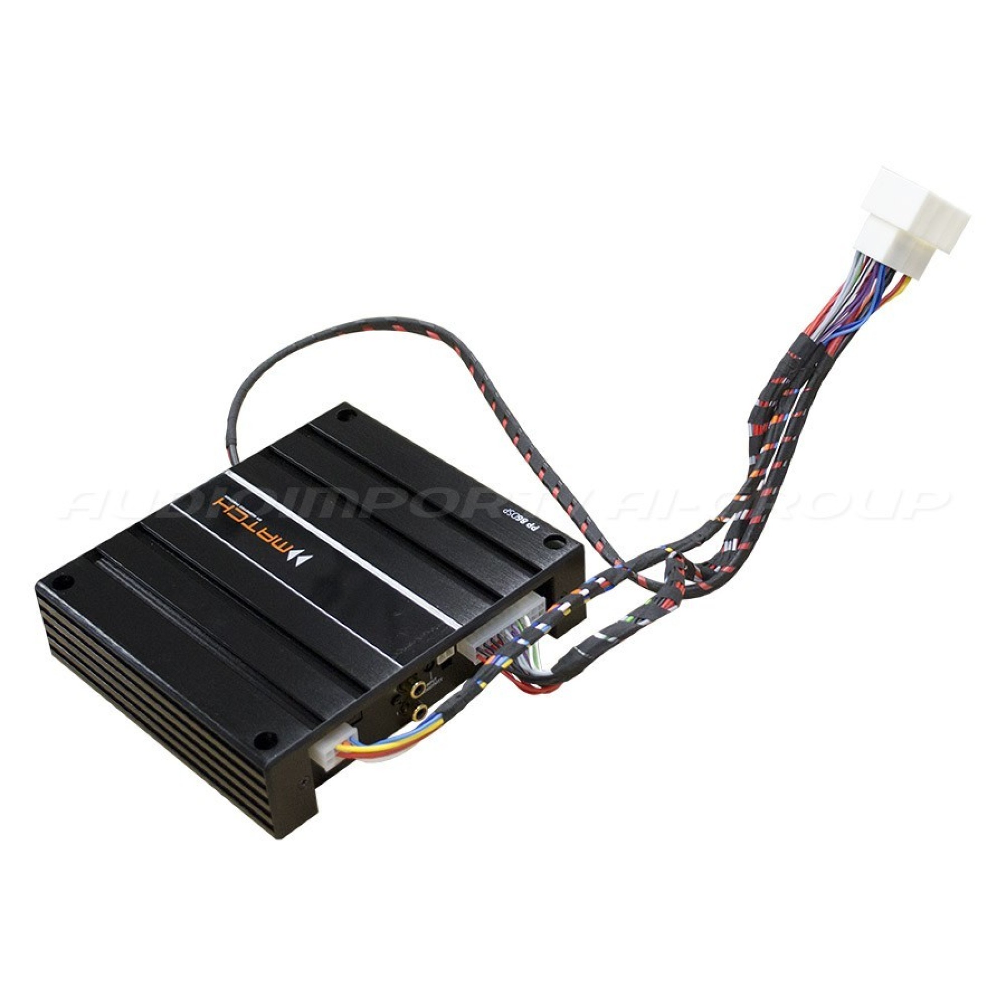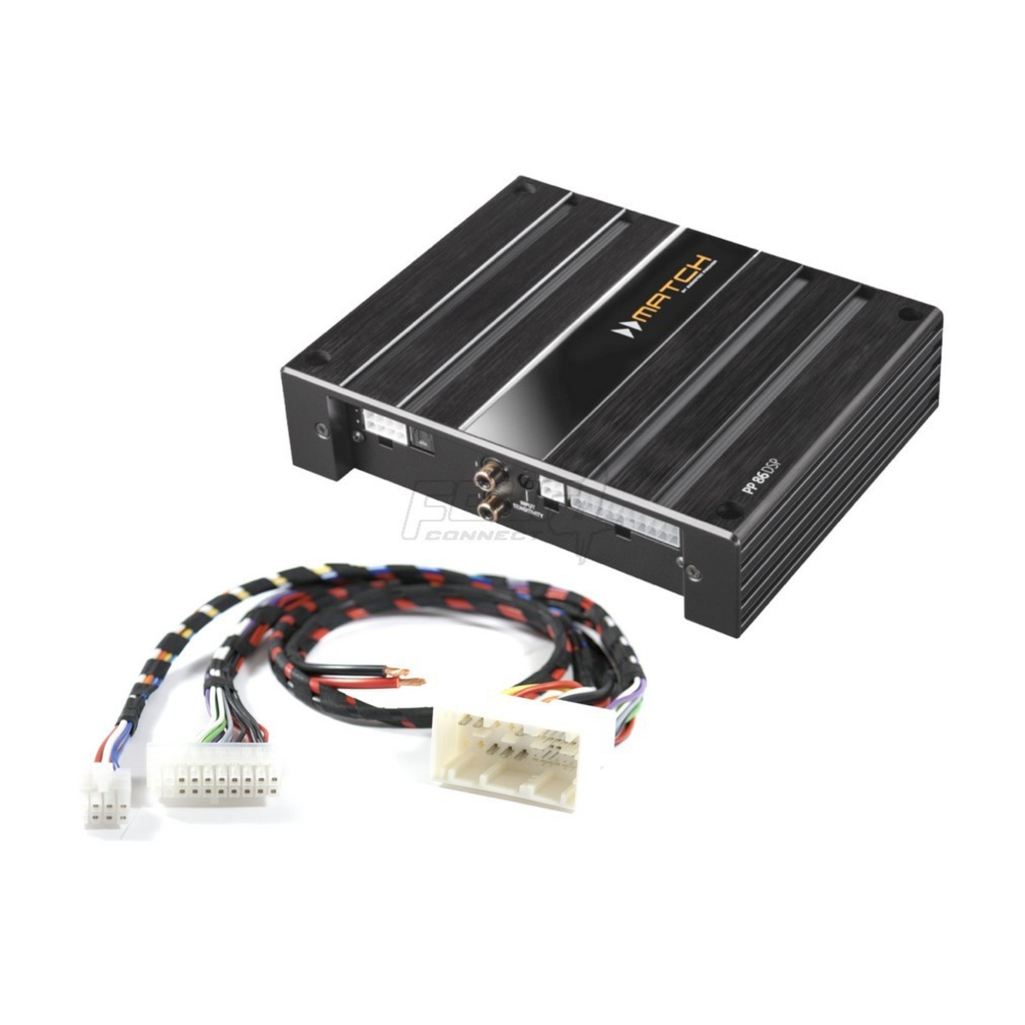 This package includes Match PP86DSP amplifier and Plug&Play-cable set. With this cable installation is Plug&Play to replace OEM BMW Hi-Fi amplifier. You only have to add power and ground cables, evertyhing else happens Plug&Play.