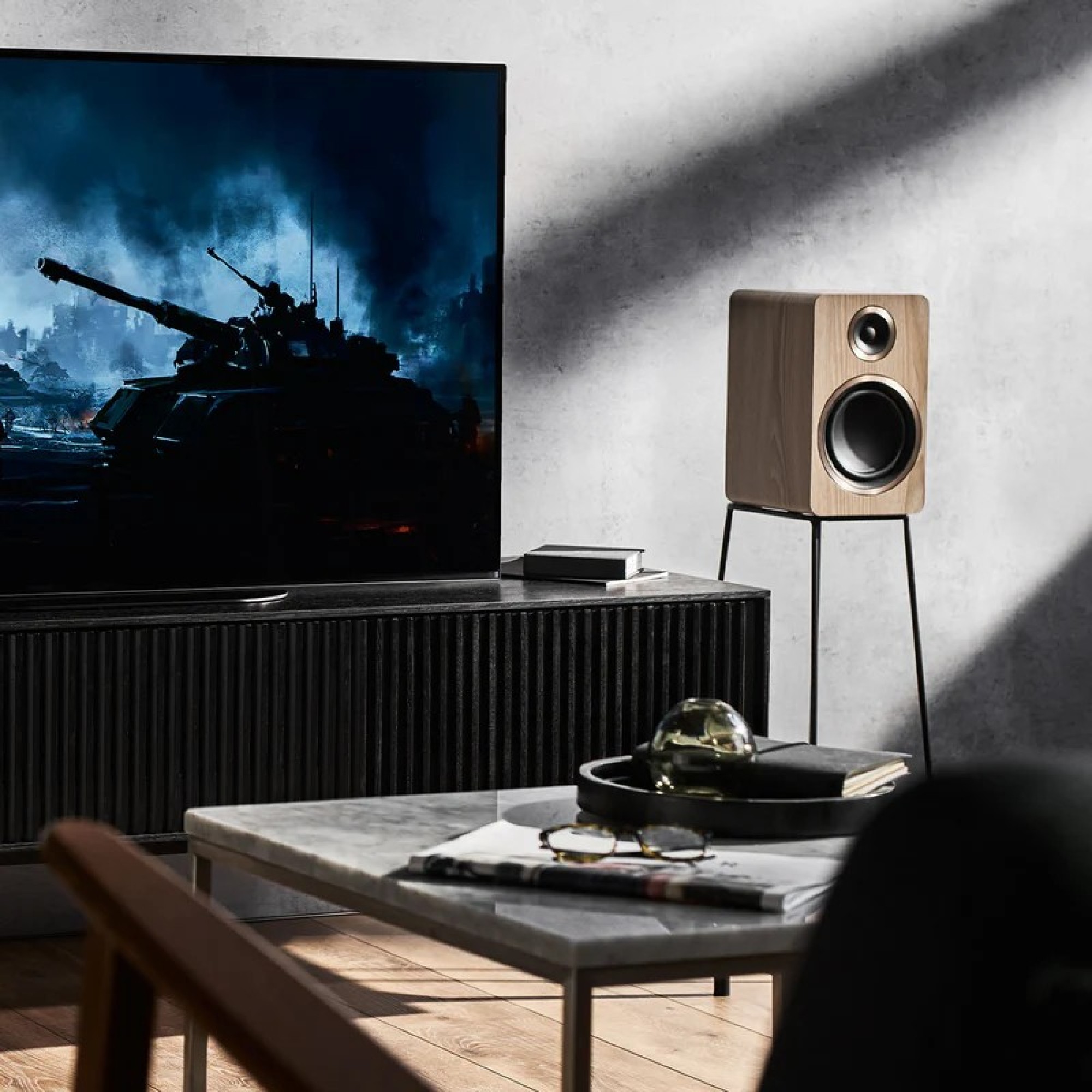 Argon Audio Fenris A5 lentyninio tipo aktyvios kolonėlės su įmontuotu galingu stiprintuvu. HDMI ARC..