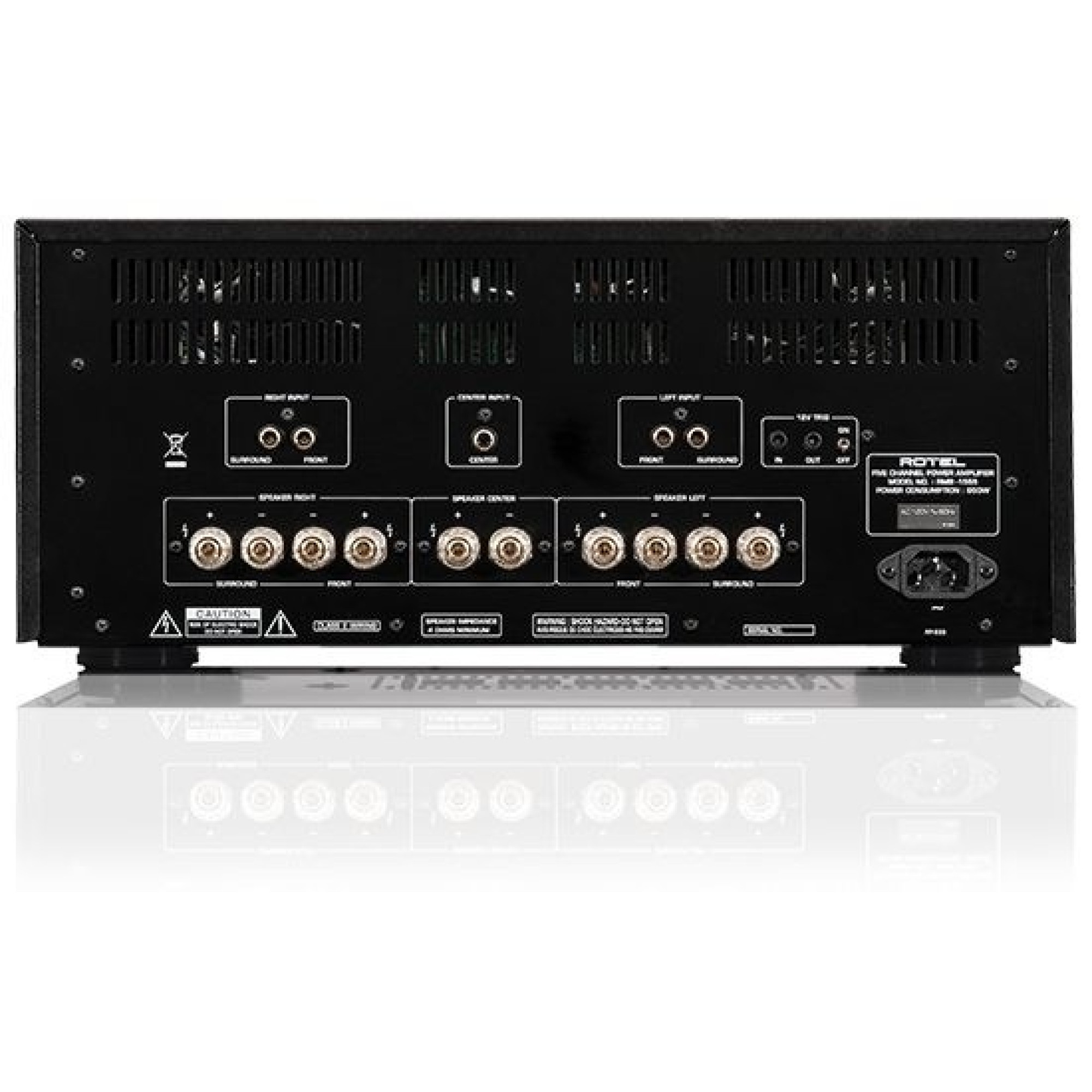 The RMB-1555 is a remarkable multichannel amplifier with power output conservatively rated at 120 Watts per channel into 8 ohms (all channels driven!). With all but the most demanding speakers located in extraordinarily large rooms, the RMB-1555 exerts the kind of precise control that presents both nuance and bombast correctly from the faintest flute overtones to the subterranean rumble of an approaching apocalypse.