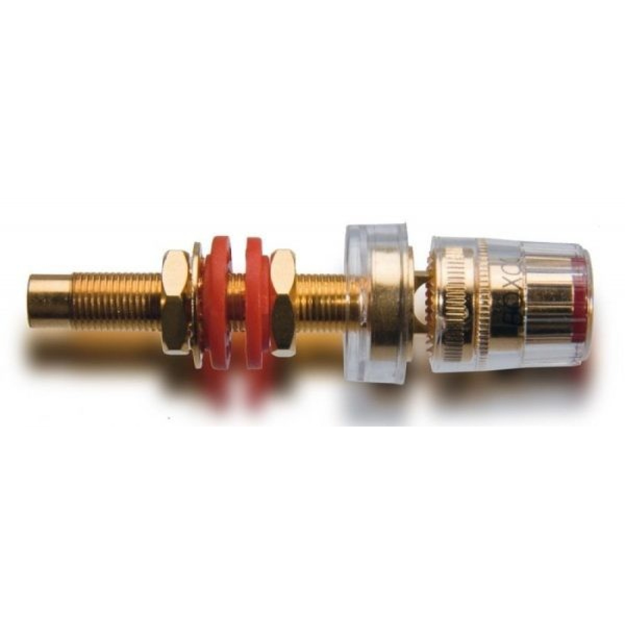 24K gold plated, robust och lavish chassis speaker connector for maximal wire crossection area of 10 mm2. Accepts also fork and BFA/banana. Suitable for a maximal speaker cabinet thickness of 29 mm. Also possible to use in an amplifier chassis. Red or black to distinguish polarity. In addition to the excellent conductivity, they are a true uplift as a luxurious speaker upgrade or as first choice for the self made speaker.