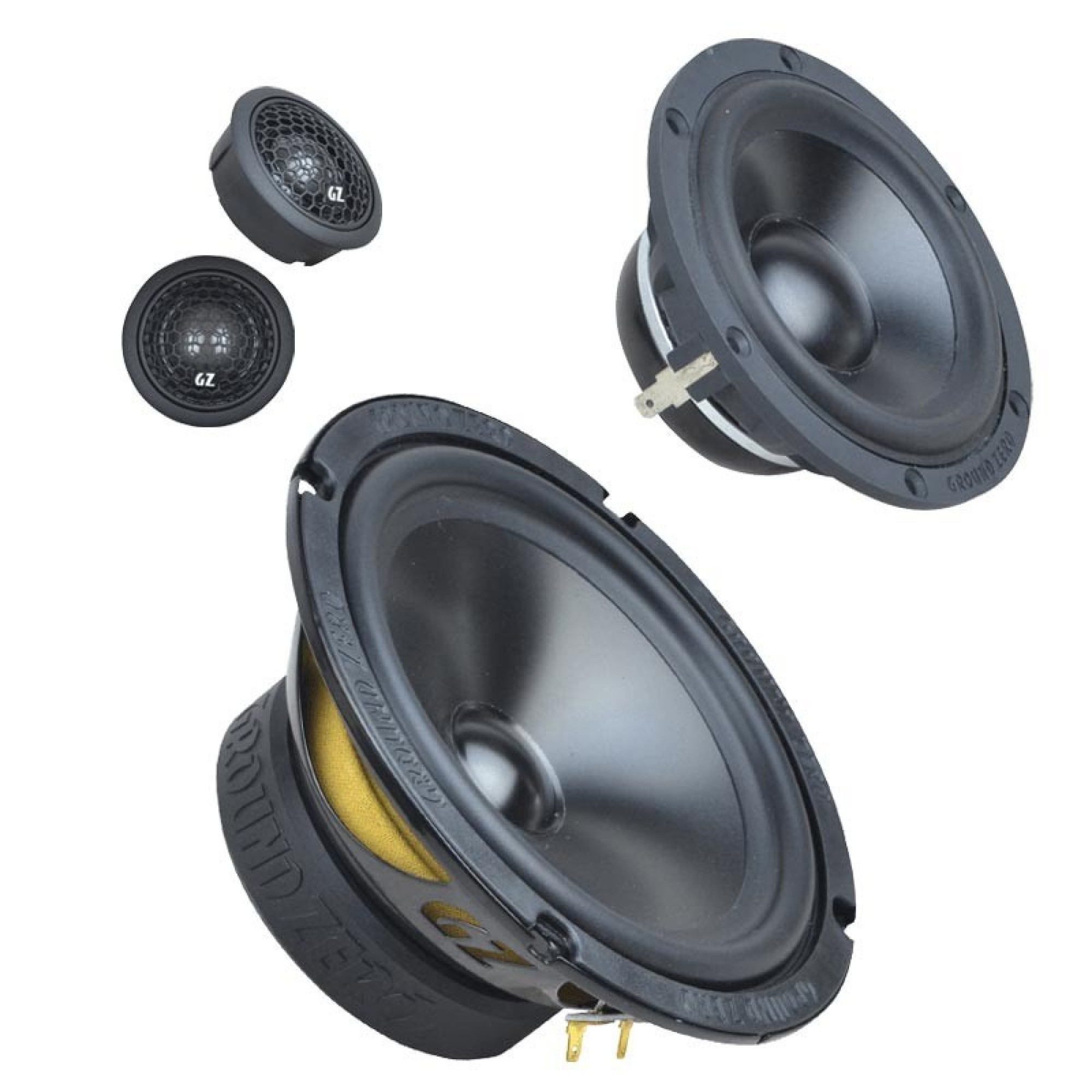 Ground Zero Radioactive SQ lineup is designed and produced for one goal only. Best possible sound quality in the price class. Designed using Klippel optimization with all drivers. These speakers work exceptionally well in typical OEM locations. Woofer is optimized for door installation. Woofer has aluminium cone and rubber surround. Lower 3 ohm impedanze takes out more power from your amp or head unit than regular 4 ohm. Midrange has composite cast frame and neodymium magnet and shallow mounting depth to ease installation. Tweeter has a silk dome. Available as 2-way and 3-way separates and separate tweeters, midranges and woofers.