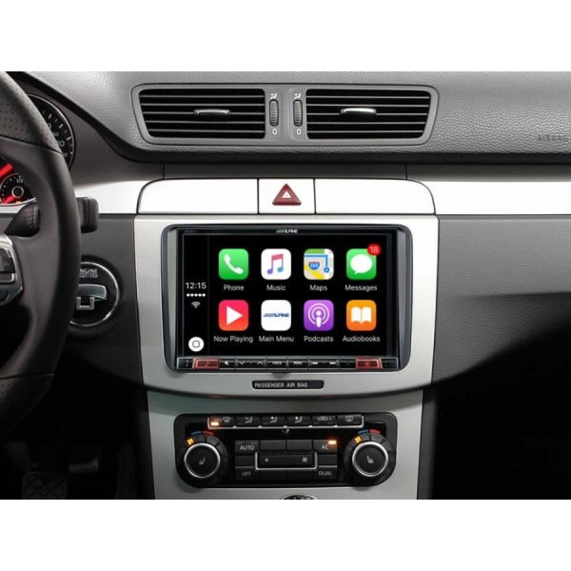 The Alpine system is connected to your steering wheel control buttons. This means you do not lose this convenient feature when upgrading to Alpine and you will have control over volume, phone (hook on/off), audio track forward/backward and many other commands. You can even activate Siri voice control if you have an iPhone connected to the system – right from your steering wheel.